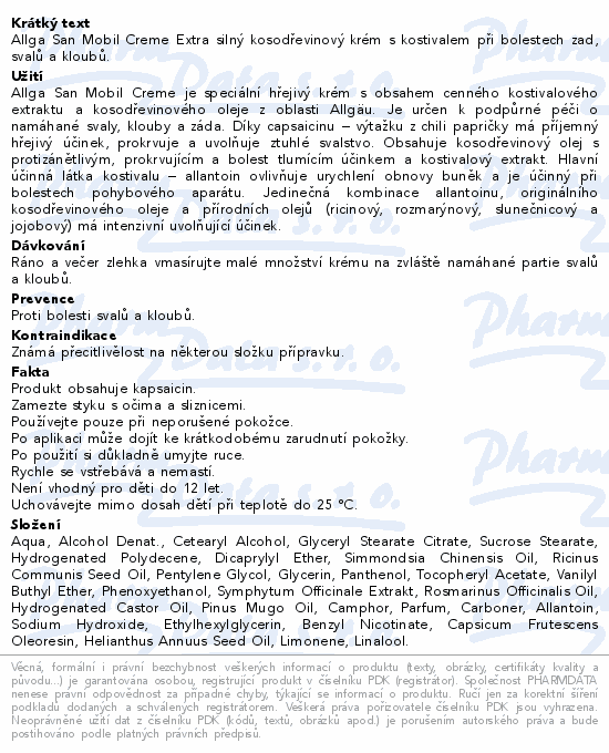 Allga San Mobil Creme Extra silný kosodřevinový krém s kostivalem při bolestech zad, svalů a kloubů.