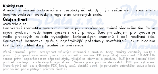 Arnika má výrazný prokrvující a antiseptický účinek. Bylinný masážní krém napomáhá k lepšímu prokrvení pokožky a regeneraci unavených svalů.