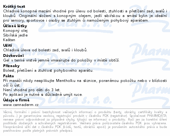 Chladivé konopné mazání vhodné pro úlevu od bolesti, ztuhlosti a přetížení zad, svalů i kloubů. Originální složení s konopným olejem, jedlí sibiřskou a směsí bylin je ideální pro seniory, sportovce i osoby se ztuhlým či namoženým pohybový aparátem.