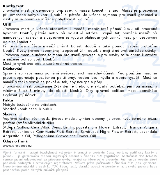 Jírovcová mast je osvědčený přípravek k masáži končetin a zad. Masáž je prospěšná při omezené pohyblivosti kloubů a páteře. Je určena zejména pro starší generaci a osoby se sklonem ke snížené pohyblivosti kloubů.