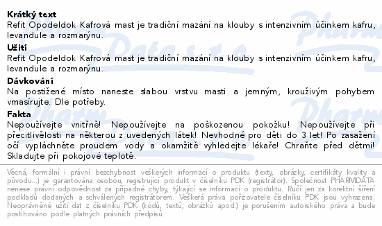 Refit Opodeldok Kafrová mast je tradiční mazání na klouby s intenzivním účinkem kafru, levandule a rozmarýnu.