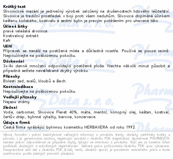 Slivovicové mazání s konopím HERBAVERA je unikátní masážní přípravek, který spojuje tradiční účinky slivovice s blahodárnými vlastnostmi konopného extraktu, kostivalu lékařského, kaštanu koňského a 7 tajných bylin. Je vhodný pro úlevu od svalové bolesti, ztuhlosti kloubů a pro celkovou regeneraci namáhaných částí těla.