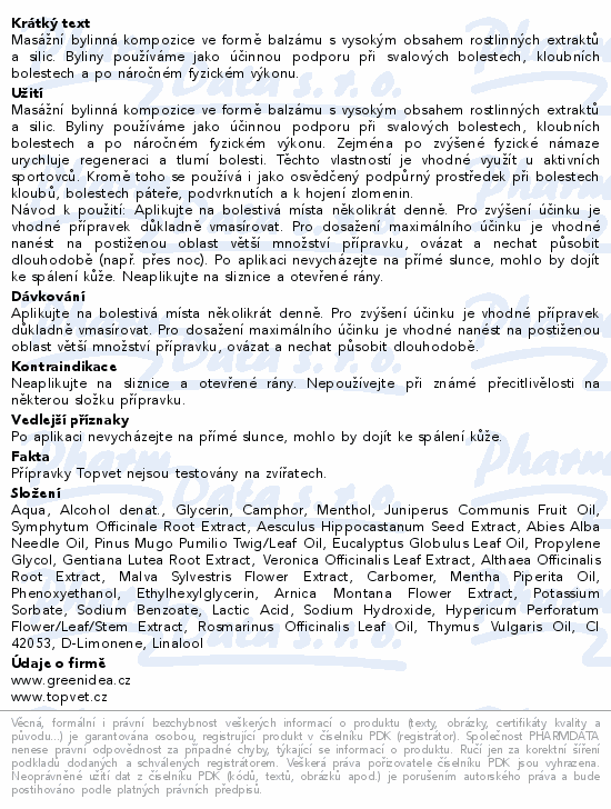 TOPVET Tatranský bylin.gel chladiv.250ml