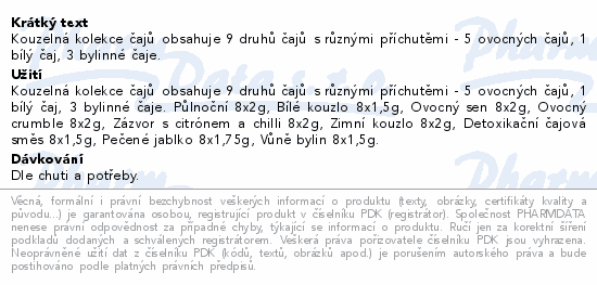 Kouzelná kolekce čajů obsahuje 9 druhů čajů s různými příchutěmi - 5 ovocných čajů, 1 bílý čaj, 3 bylinné čaje.