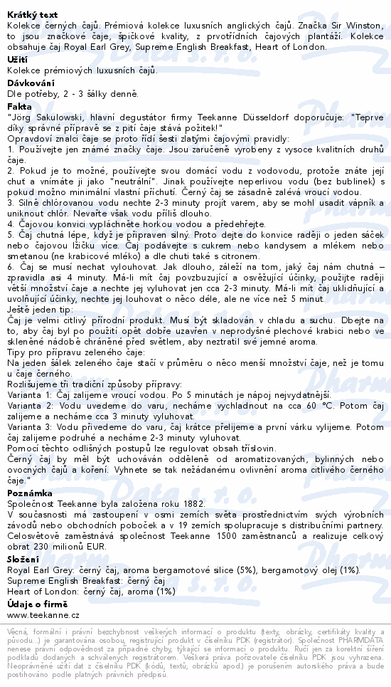 Kolekce černých čajů. Prémiová kolekce luxusních anglických čajů. Značka Sir Winston, to jsou značkové čaje, špičkové kvality, z prvotřídních čajových plantáží. Kolekce obsahuje čaj Royal Earl Grey, Supreme English Breakfast, Heart of London.