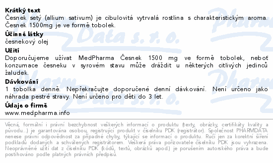 Česnek setý (allium sativum) je cibulovitá vytrvalá rostlina s charakteristickým aroma. Česnek 1500mg je ve formě tobolek.