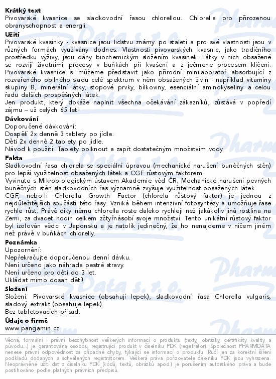 Pivovarské kvasnice se sladkovodní řasou chlorellou. Chlorella pro přirozenou obranyschopnost a energii.