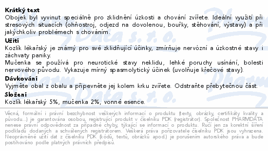 Obojek byl vyvinut speciálně pro zklidnění úzkosti a chování zvířete. Ideální využití při stresových situacích (ohňostroj, odjezd na dovolenou, bouřky, stěhování, výstavy) a při jakýchkoliv problémech s chováním.