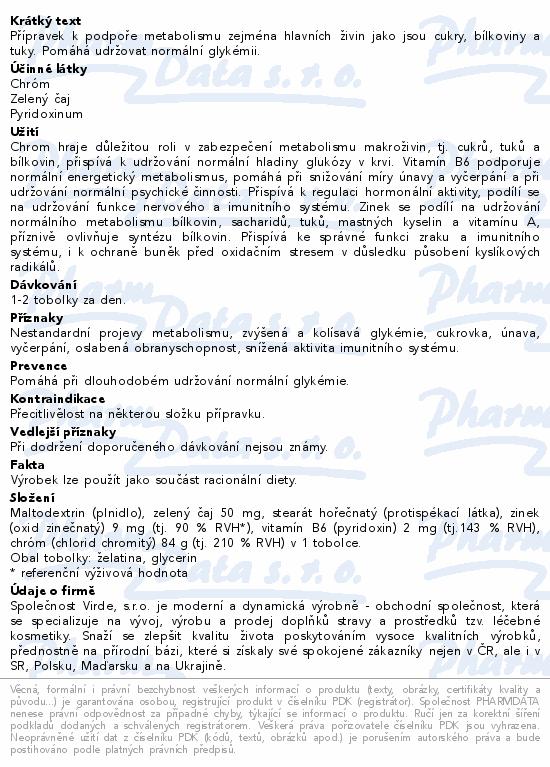 Přípravek k podpoře metabolismu zejména hlavních živin jako jsou cukry, bílkoviny a tuky. Pomáhá udržovat normální glykémii.
