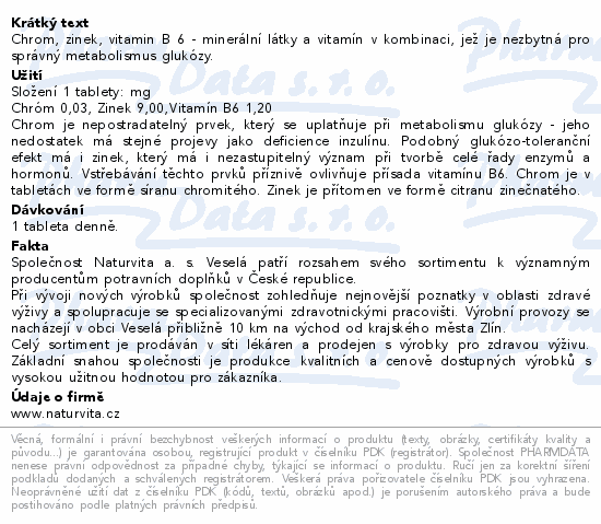 Chrom, zinek, vitamin B 6 - minerální látky a vitamín v kombinaci, jež je nezbytná pro správný metabolismus glukózy.