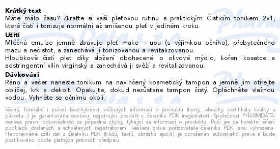 Máte málo času? Zkraťte si vaší pleťovou rutinu s praktickým Čisticím tonikem 2v1, které čistí i tonizuje normální až smíšenou pleť v jediném kroku.