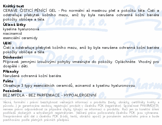 CERAVE ČISTICÍ PĚNÍCÍ GEL - Pro normální až mastnou pleť a pokožku těla. Čistí a odstraňuje přebytek kožního mazu, aniž by byla narušena ochranná kožní bariéra pokožky obličeje a těla.