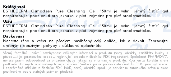 ESTHEDERM Osmoclean Pure Cleansing Gel 150ml je velmi jemný čistící gel nezpůsobující pocit pnutí pro jakoukoliv pleť, zejména pro pleť problematickou.