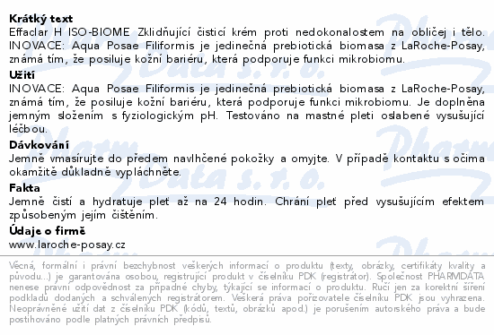Effaclar H ISO-BIOME Zklidňující čisticí krém proti nedokonalostem na obličej i tělo. INOVACE: Aqua Posae Filiformis je jedinečná prebiotická biomasa z LaRoche-Posay, známá tím, že posiluje kožní bariéru, která podporuje funkci mikrobiomu.