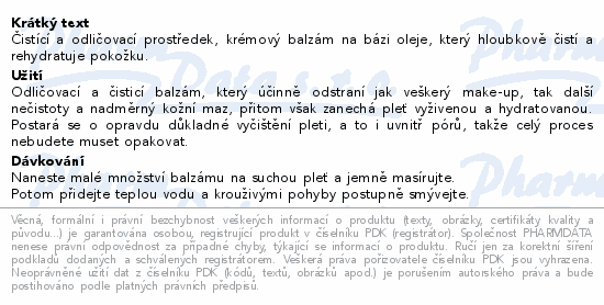 Čistící a odličovací prostředek, krémový balzám na bázi oleje, který hloubkově čistí a rehydratuje pokožku.