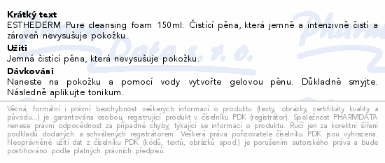 ESTHEDERM Pure cleansing foam 150ml: Čistící pěna, která jemně a intenzivně čistí a zároveň nevysušuje pokožku.