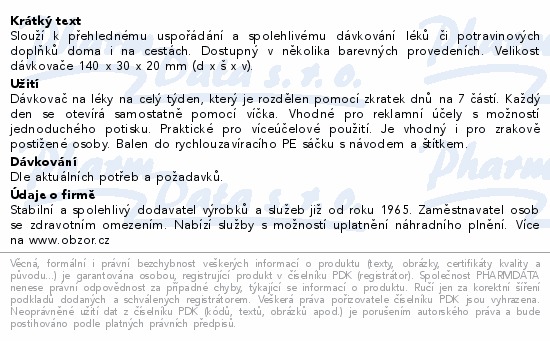 Dávkovač léků OBZOR typ 07 týd.svět.zel.