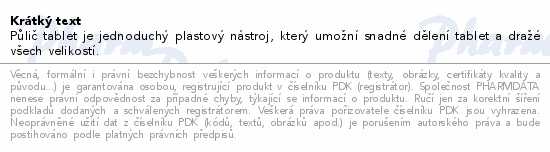 Půlič tablet je jednoduchý plastový nástroj, který umožní snadné dělení tablet a dražé všech velikostí.