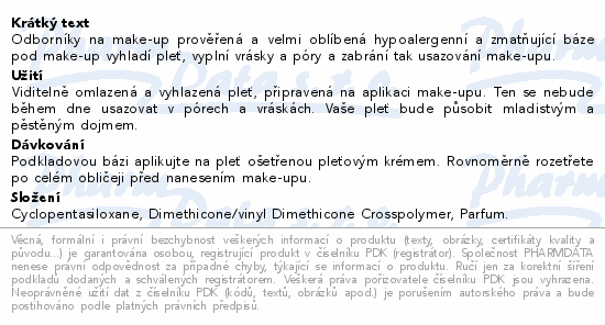 Odborníky na make-up prověřená a velmi oblíbená hypoalergenní a zmatňující báze pod make-up vyhladí pleť, vyplní vrásky a póry a zabrání tak usazování make-upu.