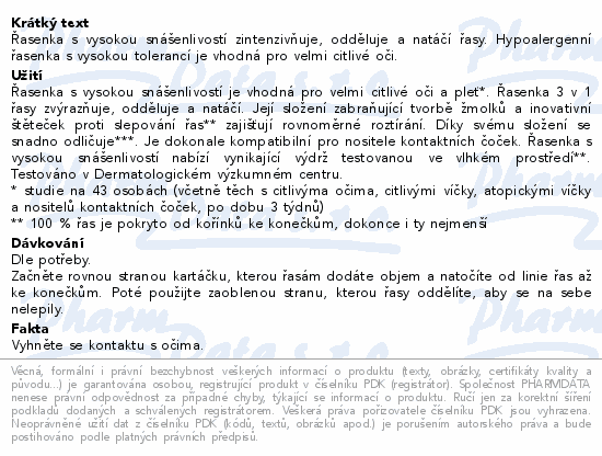 Řasenka s vysokou snášenlivostí zintenzivňuje, odděluje a natáčí řasy. Hypoalergenní řasenka s vysokou tolerancí je vhodná pro velmi citlivé oči.