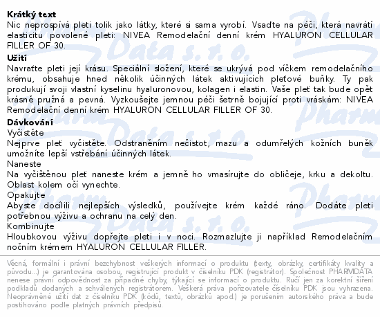 Nic neprospívá pleti tolik jako látky, které si sama vyrobí. Vsaďte na péči, která navrátí elasticitu povolené pleti: NIVEA Remodelační denní krém HYALURON CELLULAR FILLER OF 30.