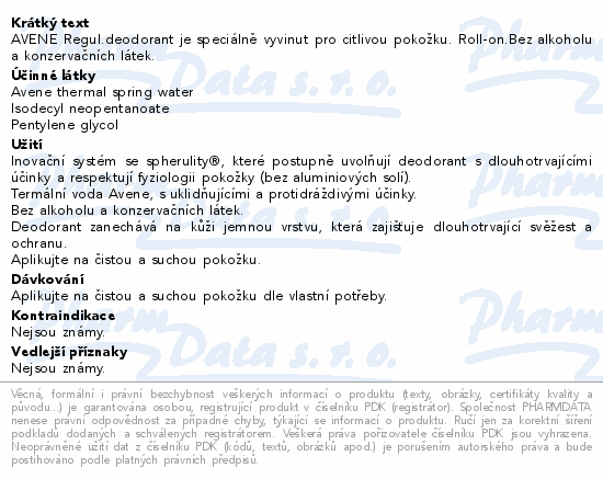 AVENE Regul.deodorant je speciálně vyvinut pro citlivou pokožku. Roll-on.Bez alkoholu a konzervačních látek.