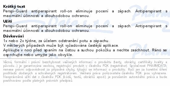 Perspi-Guard antiperspirant roll-on eliminuje pocení a zápach. Antiperspirant s maximální účinností a dlouhodobou ochranou.