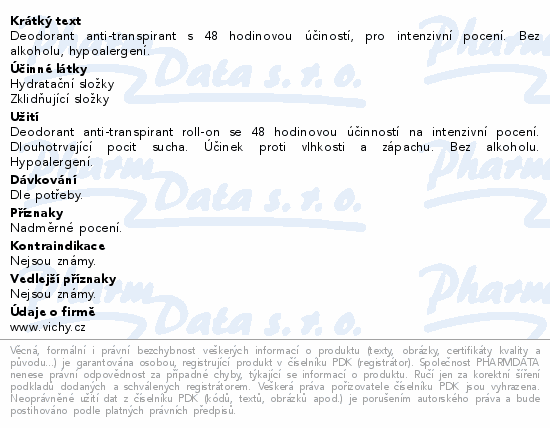 Až 48h účinek proti nadměrnému pocení. Pro ženy a muže, kteří trpí intenzivním pocením a hledají dlouhotrvající účinnost bez nepříjemných pocitu na pokožce. Bez alkoholu. S Mineralizující termální vodou Vichy.