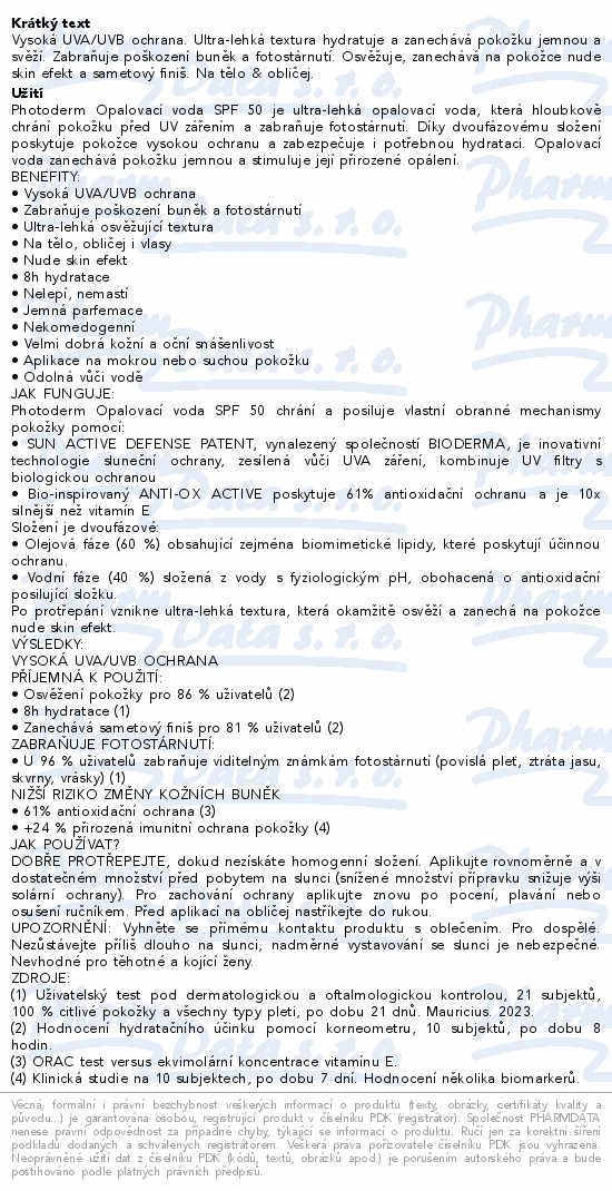 BIODERMA Photoderm opalovací voda SPF50 200ml