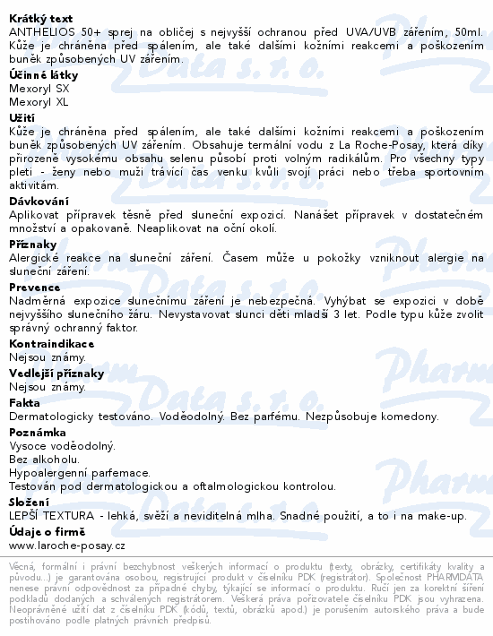 ANTHELIOS 50+ sprej na obličej s nejvyšší ochranou před UVA/UVB zářením, 50ml. Kůže je chráněna před spálením, ale také dalšími kožními reakcemi a poškozením buněk způsobených UV zářením.