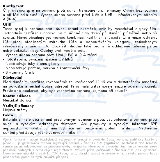 Čirý, chladící sprej na ochranu proti slunci, transparentní, nemastný. Chrání bez roztírání a při Mallorka-akné. Vysoce účinná ochrana před UVA a UVB + infračerveným zářením A (IR-A).