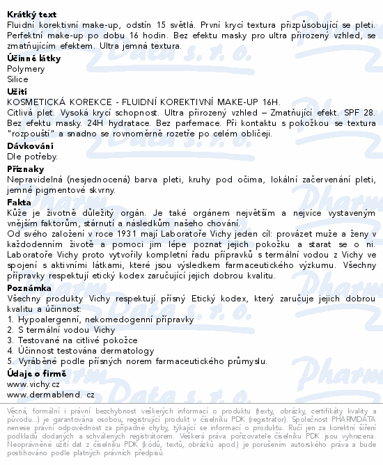 Fluidní korektivní make-up, odstín 15 světlá. První krycí textura přizpůsobující se pleti. Perfektní make-up po dobu 16 hodin. Bez efektu masky pro ultra přirozený vzhled, se zmatňujícím efektem. Ultra jemná textura.