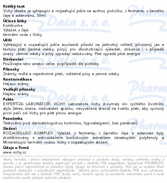 Vichy Idealia je vyhlazující a rozjasňující péče na suchou pokožku, z fermentu z černého čaje a adenosinu, 50ml.