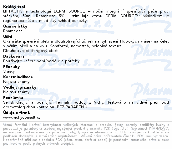 LIFTACTIV s technologií DERM SOURCE – noční integrální zpevňující péče proti vráskám, 50ml. Rhamnosa 5% - stimuluje vrstvu DERM SOURCE*: výsledkem je regenerace kůže a mladistvý vzhled pokožky.