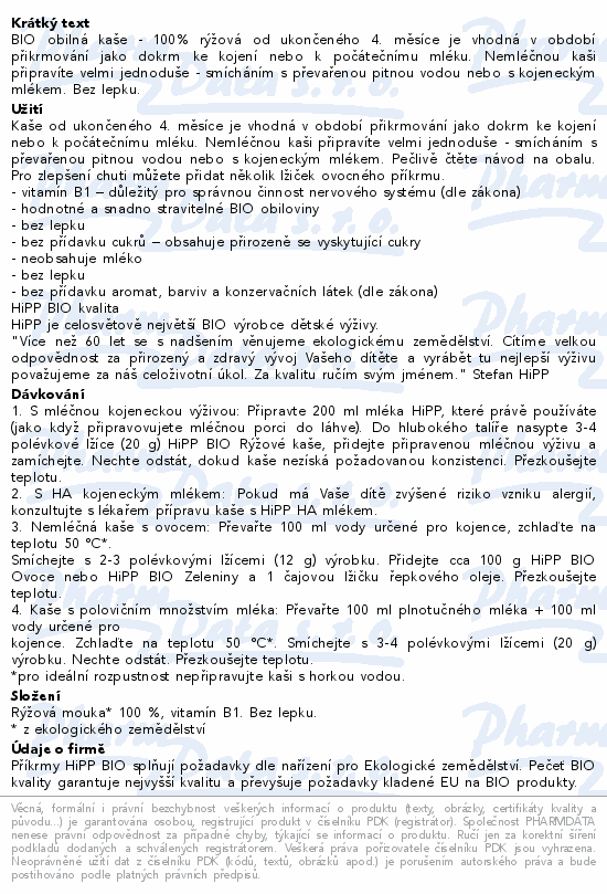 HiPP KASE OBILNA BIO 100% ryzova 200g