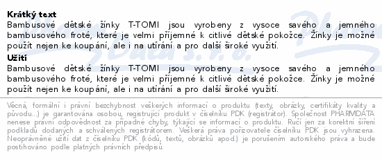Bambusové dětské žínky T-TOMI jsou vyrobeny z vysoce savého a jemného bambusového froté, které je velmi příjemné k citlivé dětské pokožce. Žínky je možné použít nejen ke koupání, ale i na utírání a pro další široké využití.