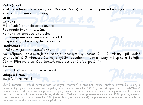 Kvalitní jednodruhový černý čaj (Orange Pekoe) původem z jižní Indie s výraznou chutí a příjemnou vůní - porcovaný.