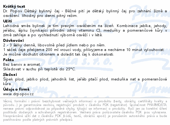 Dr. Popov Dětský bylinný čaj - Běžné pití je dětský bylinný čaj pro zahnání žízně a osvěžení. Vhodný pro denní pitný režim.