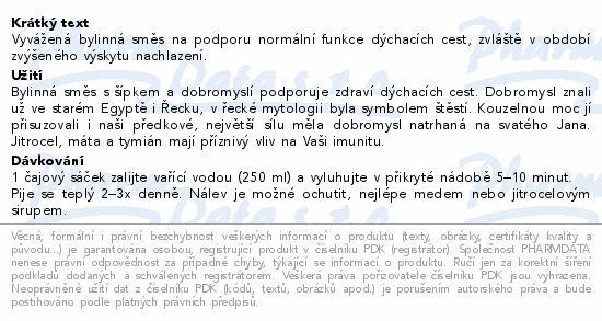 Vyvážená bylinná směs na podporu normální funkce dýchacích cest, zvláště v období zvýšeného výskytu nachlazení.