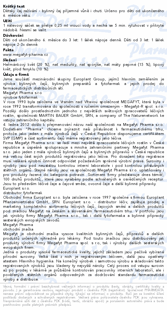 Dětský čaj zažívání - bylinný čaj příjemné vůně i chuti. Určeno pro děti od ukončeného 6. měsíce věku.