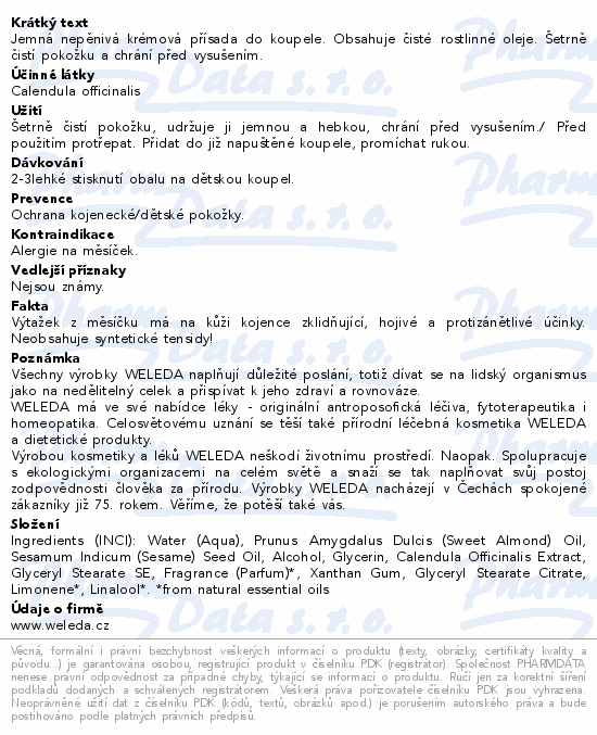 Jemná nepěnivá krémová přísada do koupele. Obsahuje čisté rostlinné oleje. Šetrně čistí pokožku a chrání před vysušením.