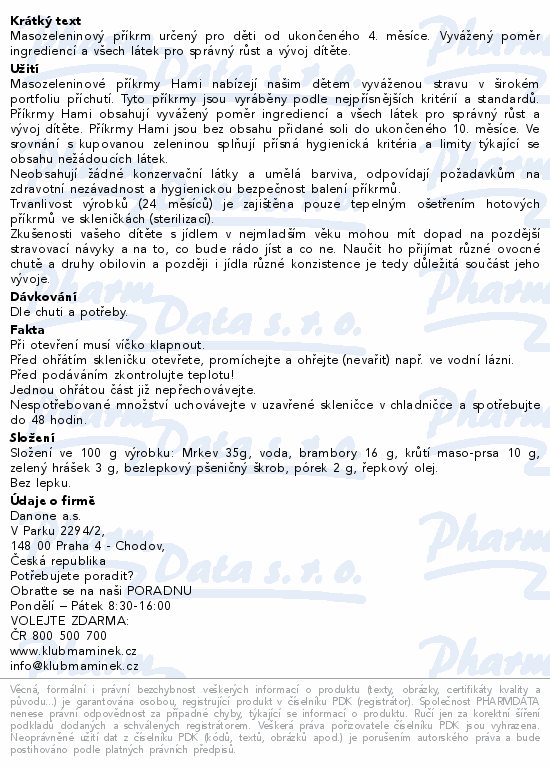 Masozeleninový příkrm určený pro děti od ukončeného 4. měsíce. Vyvážený poměr ingrediencí a všech látek pro správný růst a vývoj dítěte.