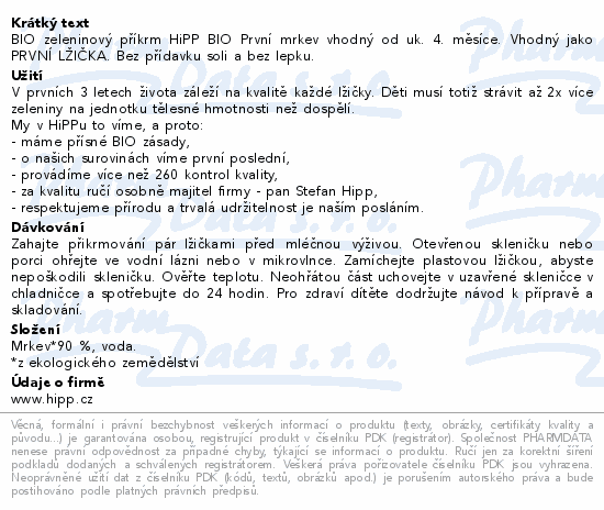 BIO zeleninový příkrm HiPP BIO První mrkev vhodný od uk. 4. měsíce. Vhodný jako PRVNÍ LŽIČKA. Bez přídavku soli a bez lepku.