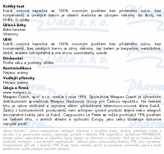 Kubík ovocná kapsička se 100% ovocným podílem bez přidaného cukru, bez konzervantů a umělých barviv je ideální svačinka se zdrojem vlákniny do školy, na hřiště, či výlety.