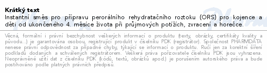 Instantní směs pro přípravu perorálního rehydratačního roztoku (ORS) pro kojence a děti od ukončeného 4. měsíce života při průjmových potížích, zvracení a horečce.