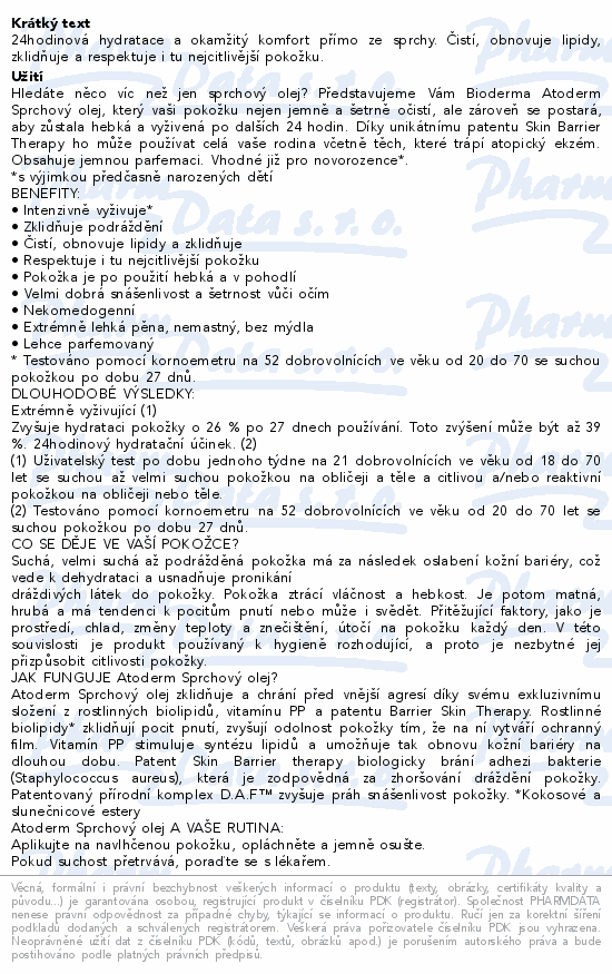 BIODERMA Atoderm Sprchový olej 200 ml: Krémová a nemastná textura Atoderm Sprchového oleje zajištuje jemné čištění velmi suché a podrážděné citlivé pokožky.