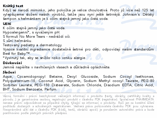 Když se narodí miminko, jeho pokožka je velice choulostivá. Proto již více než 125 let vylepšujeme složení našich výrobků, takže jsou nyní ještě šetrnější. Johnson´s. Dětský šampon s heřmánkem je k očím stejně jemný jako čistá voda.