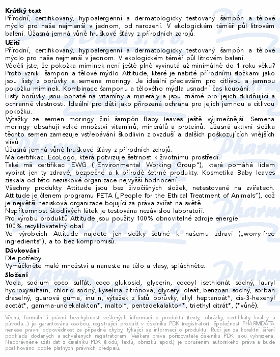 Přírodní, certifikovaný, hypoalergenní a dermatologicky testovaný šampón a tělové mýdlo pro naše nejmenší v jednom, od narození. V ekologickém téměř půl litrovém balení. Úžasná jemná vůně hruškové šťávy z přírodních zdrojů.