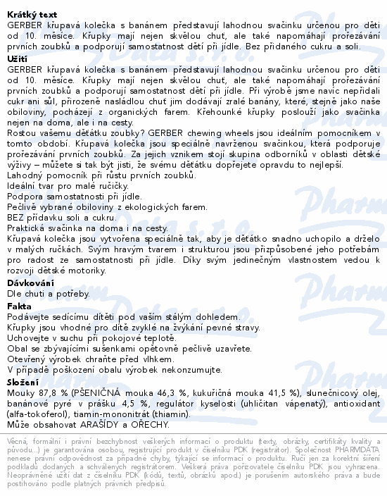 GERBER křupavá kolečka s banánem představují lahodnou svačinku určenou pro děti od 10. měsíce. Křupky mají nejen skvělou chuť, ale také napomáhají prořezávání prvních zoubků a podporují samostatnost dětí při jídle. Bez přidaného cukru a soli.