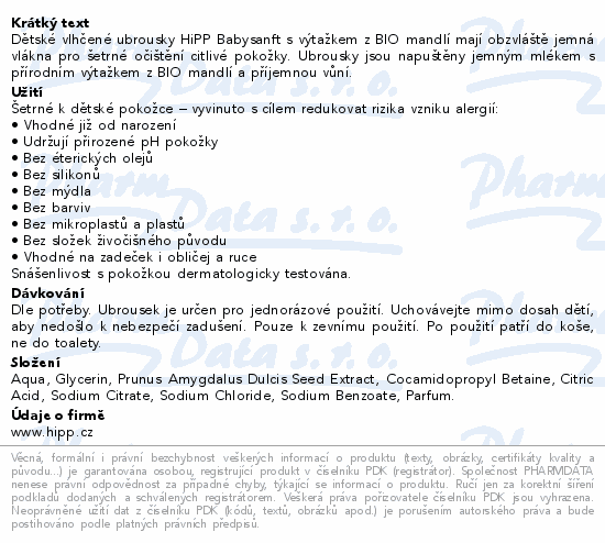 Dětské vlhčené ubrousky HiPP Babysanft s výtažkem z BIO mandlí mají obzvláště jemná vlákna pro šetrné očištění citlivé pokožky. Ubrousky jsou napuštěny jemným mlékem s přírodním výtažkem z BIO mandlí a příjemnou vůní.